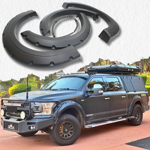 Pocket Style Matte Black Fender Flares Suits Ford F-150 2015 - 2021 Dual Cab 4WD Wheel Guard
