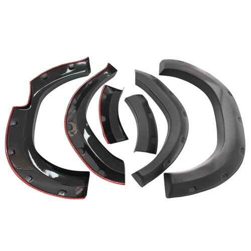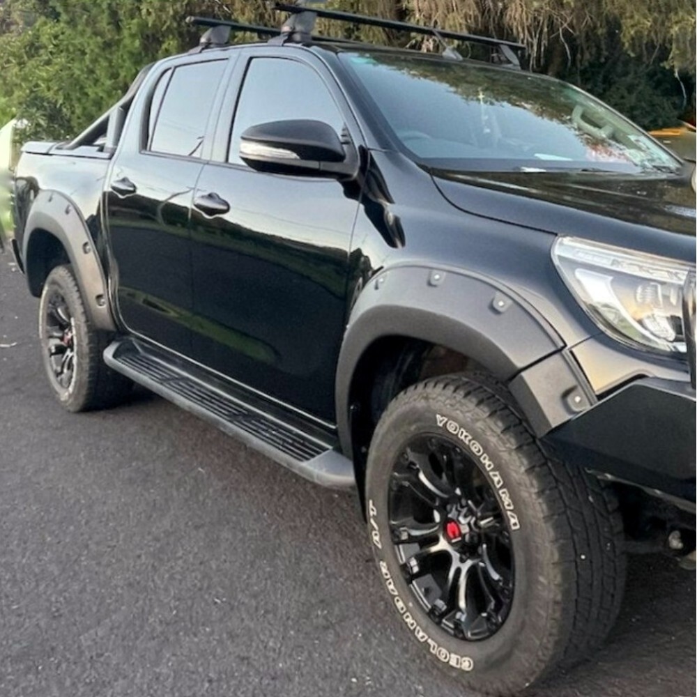 What an awesome upgrade. Add this unique look to your Hilux and make it stand out from the crowd. These flares are made from a satin black textured roughly 3mm thick ABS plastic with decorative screws. These are mainly designed for extra wheel cover as well as the tough look.