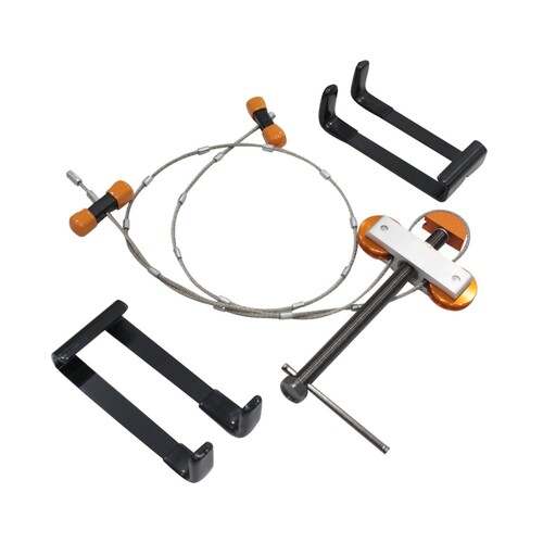 The Cobra Hunting Universal portable compound bow press, Made with a stainless steel wire for durability. Very simple to use and carry. A must-have when using a compound bow allowing you to replace strings and cables, install peep sights, adjust the bow length and more. This portable bow press is easy to assemble and disassemble. The last thing you need when going on a hunting trip is for your string to come off and not be able to reattach it