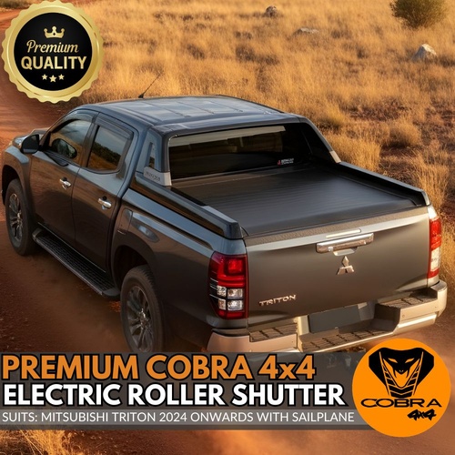 Premium Cobra 4x4 Electric Retractable Roller Shutter fits Mitsubishi Triton 2024 Onwards With Sail Plane Tub Tonneau Roll Cover Black Lid