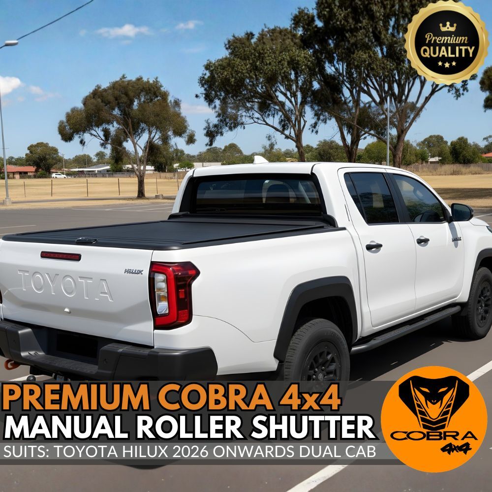 Premium Cobra 4x4 Retractable Roller Shutter fits Toyota Hilux 2026 Onwards Tub Manual Tonneau Roll Cover Black