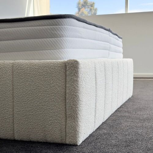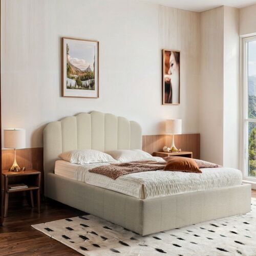 Premium Dalia Queen Size Bed Frame Beige Boucle Fabric Upholstery Elegant Comfortable Bedroom Furniture