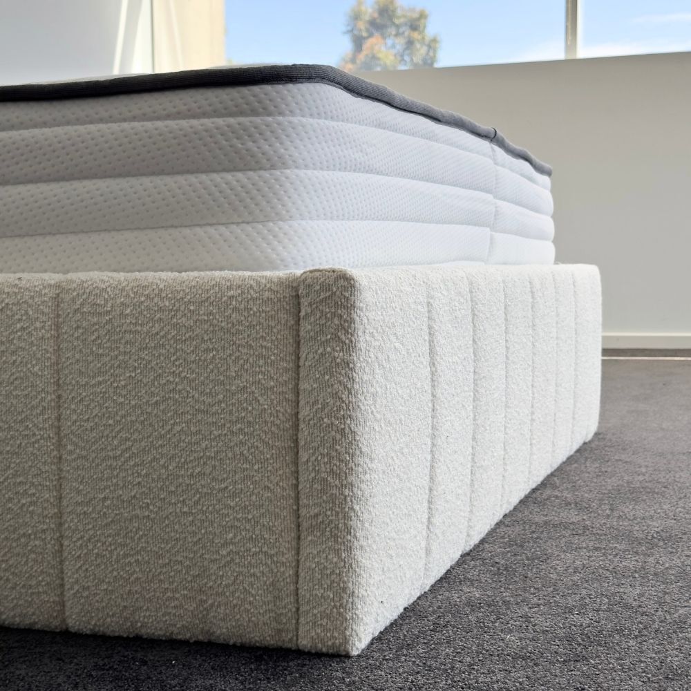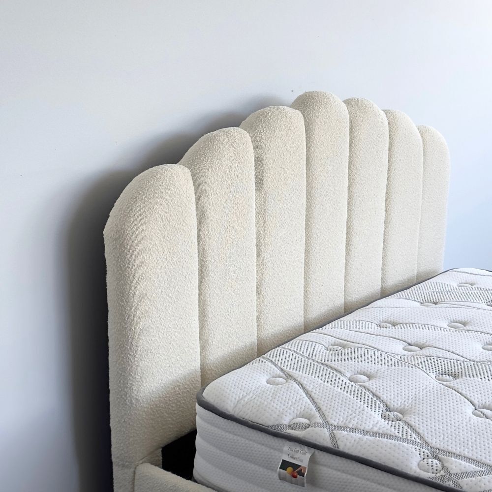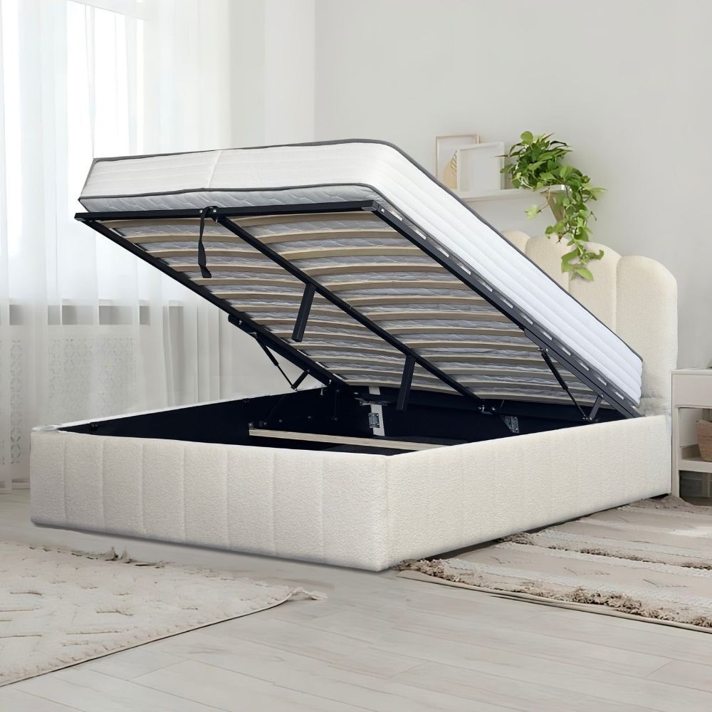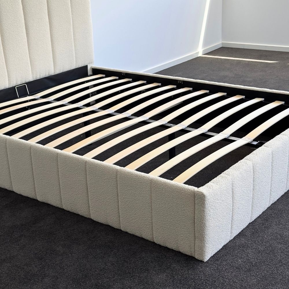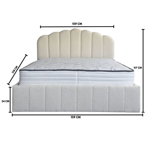 Upgrade your bedroom aesthetics with our contemporary Dalia queen-size bed! Wrapped in a soft beige boucle fabric, this bed showcases a stylish design that effortlessly blends comfort and sophistication. Equipped with a convenient gas lift mechanism, it's not just visually appealing but also practical. Redefine your sleep space with the modern charm of our Dalia bed, the perfect addition to elevate your home decor.