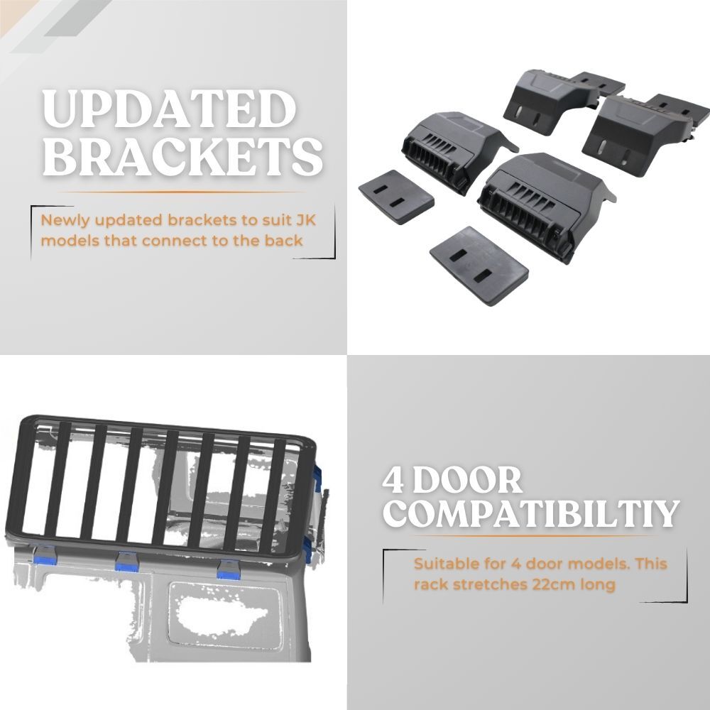 Premium Full length Roof Rack fits Jeep JL Wrangler 4 door Aluminium 220 x 140cm Flat Platform Steel Low Profile
