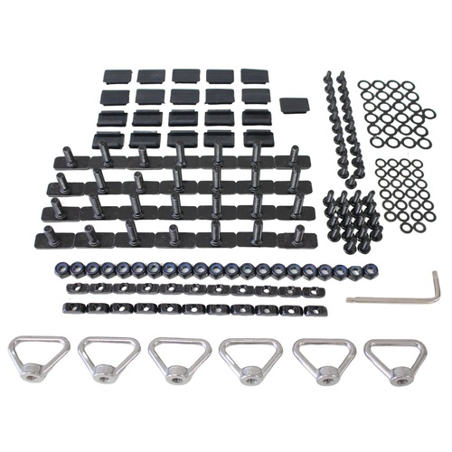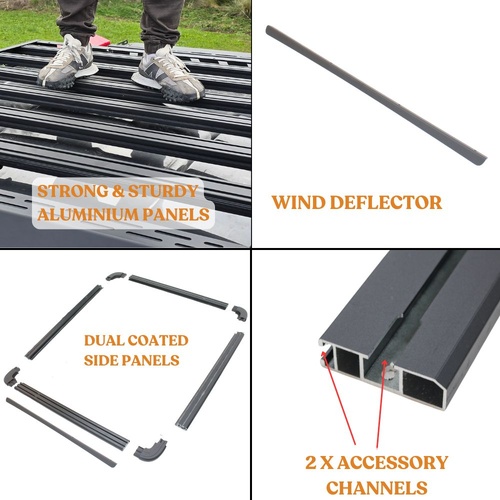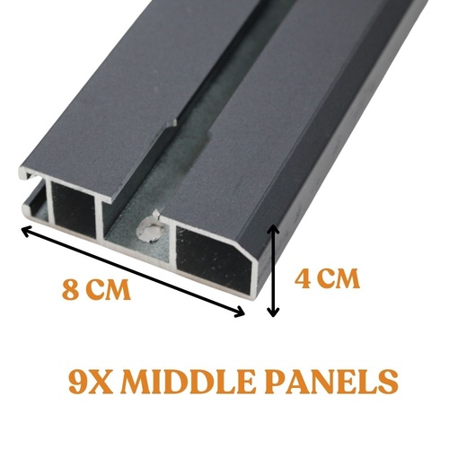 • 9 x Extra strong Aluminium panels with 2 x channels each. The strongest panels in the market showing an image standing on 1 panel. Each panel consists of 2 x channels for adding all the accessories you need using channel bolts. Rubbers are included for channels not in use