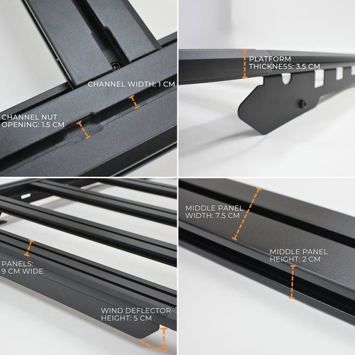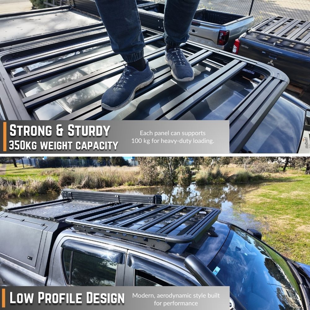 NOTE: This premium-quality roof rack typically retails for $1,500 or more from other retailers. Each panel is engineered to support upto 100 kg, offering exceptional strength and durability. The design features multiple accessory channels for versatile mounting options, along with integrated tie-down anchor points — all included in the package. Quite simply, nothing else under $1,000 comes close.