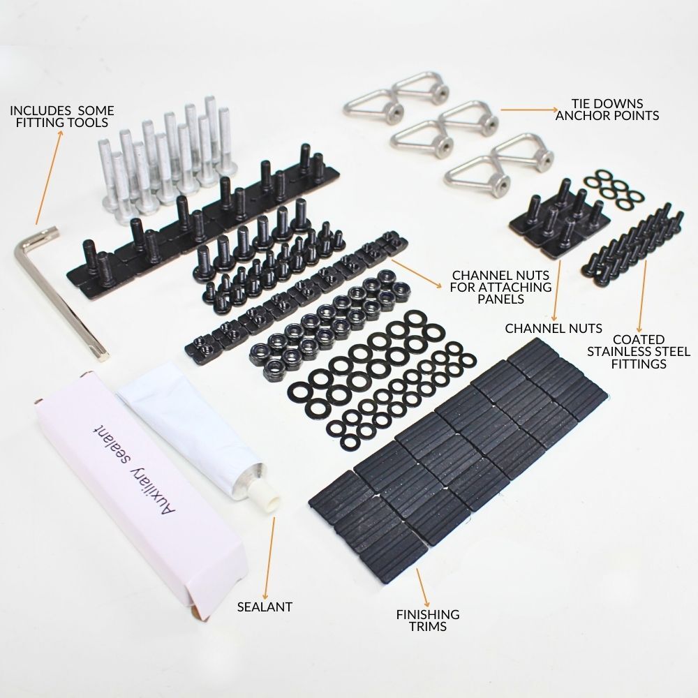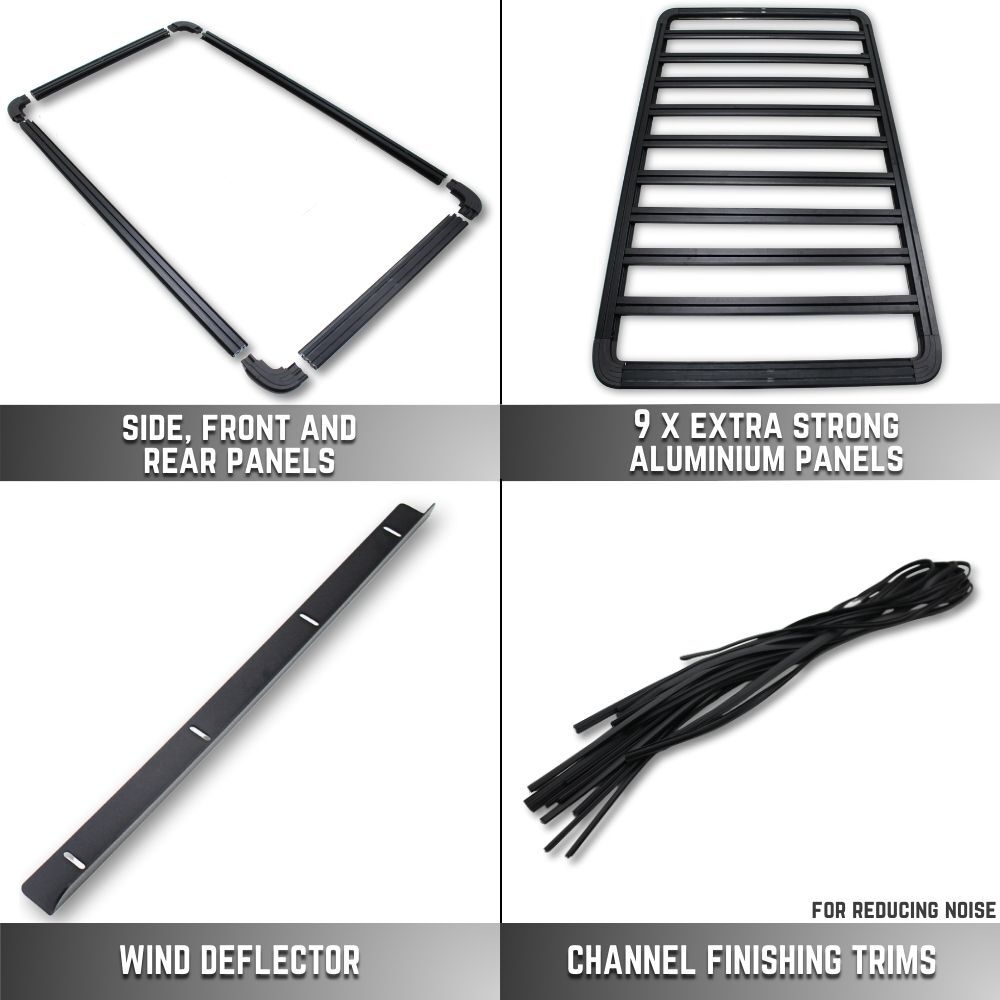 NOTE: This premium-quality roof rack typically retails for more than $1,500 other retailers. Each panel is engineered to support upto 100 kg, offering exceptional strength and durability. The design features multiple accessory channels for versatile mounting options, along with integrated tie-down anchor points — all included in the package. Quite simply, nothing else under $1,500 comes close.