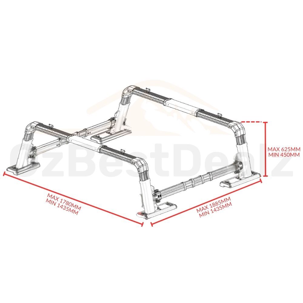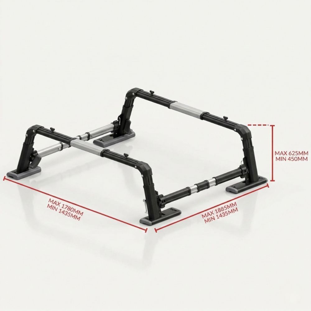 The rack also includes adjustable bottom legs, allowing for secure installation directly to your tub or roller shutter channels, making fitment simple and adaptable across different vehicles.
