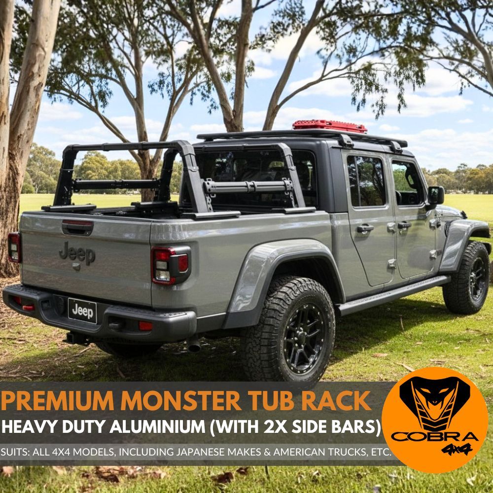 Premium Heavy Duty Aluminium Monster Tub Rack with 2 x Side Bars Cargo Ladder Sportsbar Universal for All 4x4 Models Hilux Ranger Ram And More