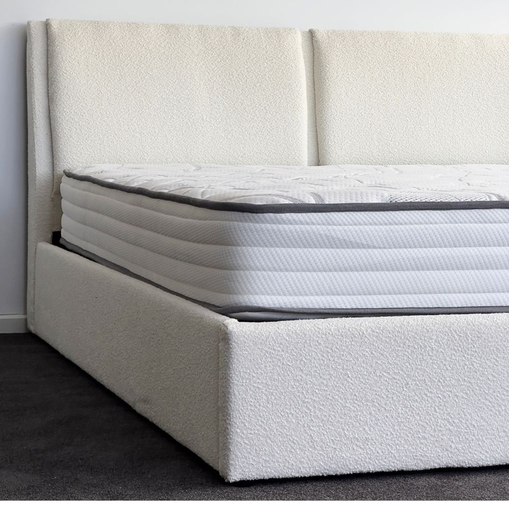 Premium Madison King Size Bed Frame Beige Boucle Fabric Upholstery Elegant Comfortable Bedroom Furniture