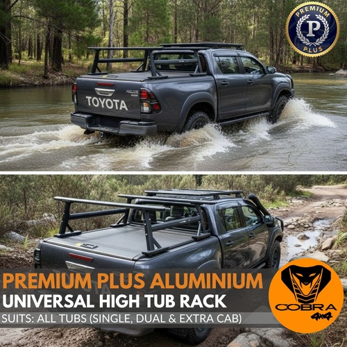 Premium Plus Aluminium Universal High Tub Rack Adjustable Roof Ute Tradie Steel Roll bar Ranger Hilux Triton Navara