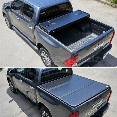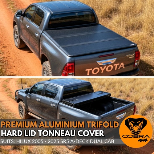 Premium Trifold Aluminium Foldable Hard Tub Lid Tonneau Cover Fits Hilux Dual Cab 2005 - 2025 A-Deck SR5