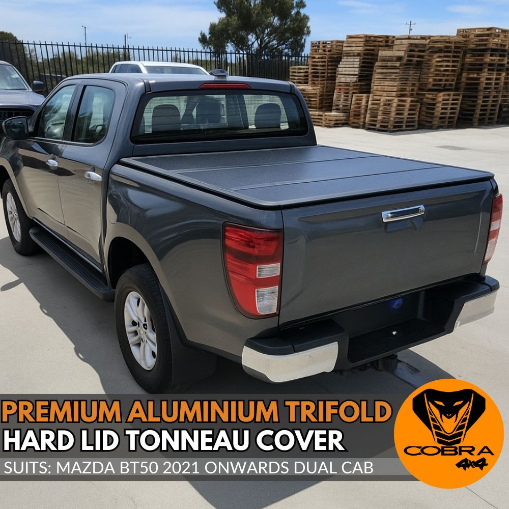 Premium Trifold Aluminium Foldable Hard Tub Lid Tonneau Cover Fits Mazda BT50 2021 Onwards Shutter