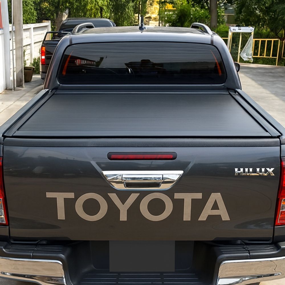 Retractable Under Rail Manual Roller Shutter fits Toyota Hilux 2015 Onwards SR5 Tub Tonneau Roll Cover Black Aluminium Dual Cab