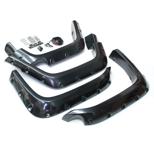 Note to fitters: Flare rubbers should be glued to the fenders then glued to the guards. Trimming around the side indicator is required for most Australian models. Image included for illustration. Flares should be screwed in from under. No drilling into guards required. If you want to use existing holes from under screw new holes on the flares once lined up. Other cutting and trimming can be required