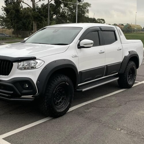 These flares are the toughest looking flares you can get for your X-Class. Just check out the vids and Pics. They are absolutely stunning with the correct setup such as the larger wheels to suit. They are roughly 100mm wide from where they start on the top of the guards. We also have the cladding, bonnet protector and weathershields if you check out our site. Also soon to come the Cobra 4x4 Grill to suit.