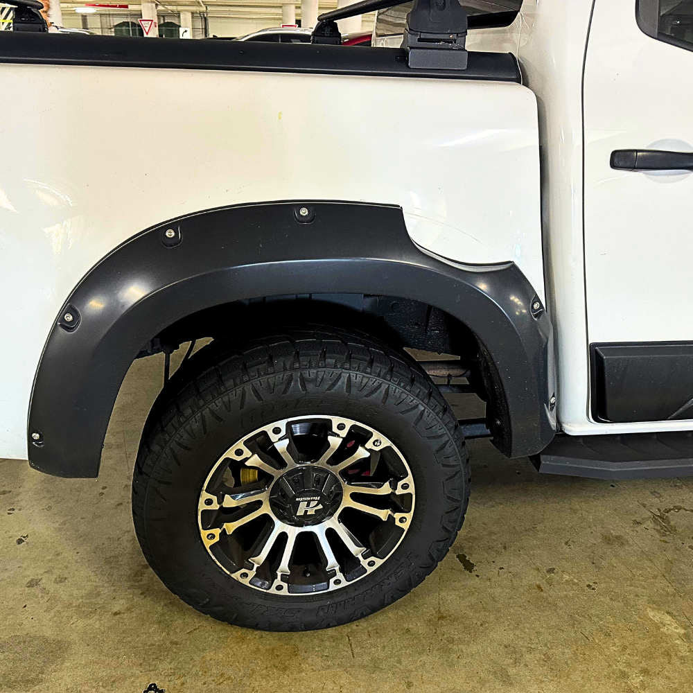 Please note:Professional installation required. They are installed by gluing rubbers to the flares then glueing them to the guards while screwed in from under. If you want to use existing holes from under just drill new holes into the flares. Some cutting of the flare from the inside is required when installing. These are not painted. They can be painted matte black or colour coded to your car if you take them to a paint shop