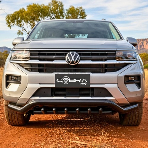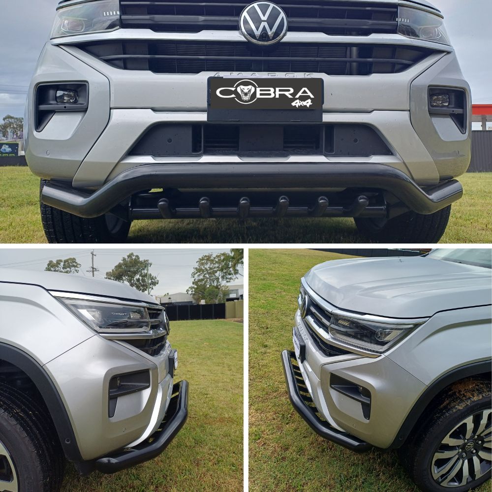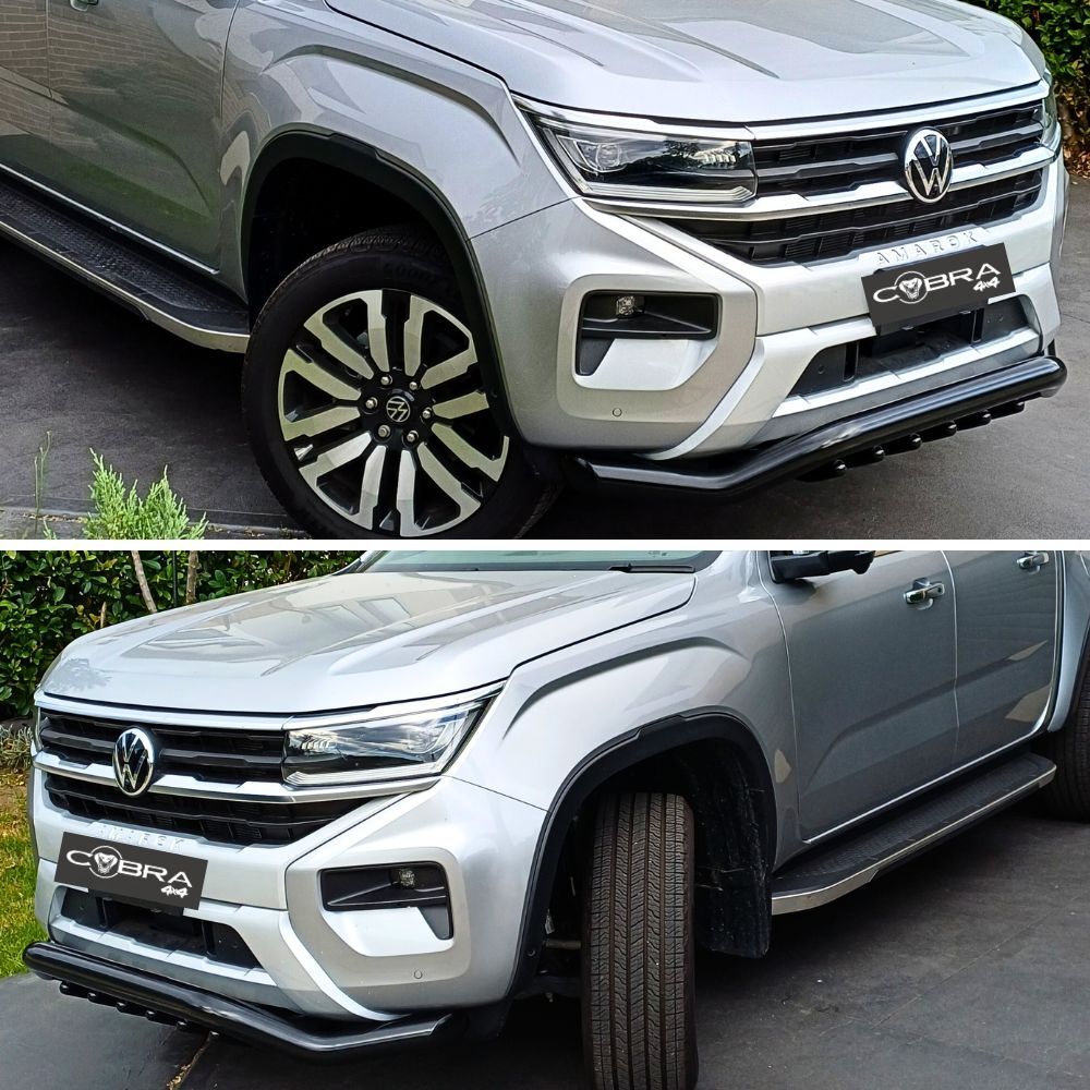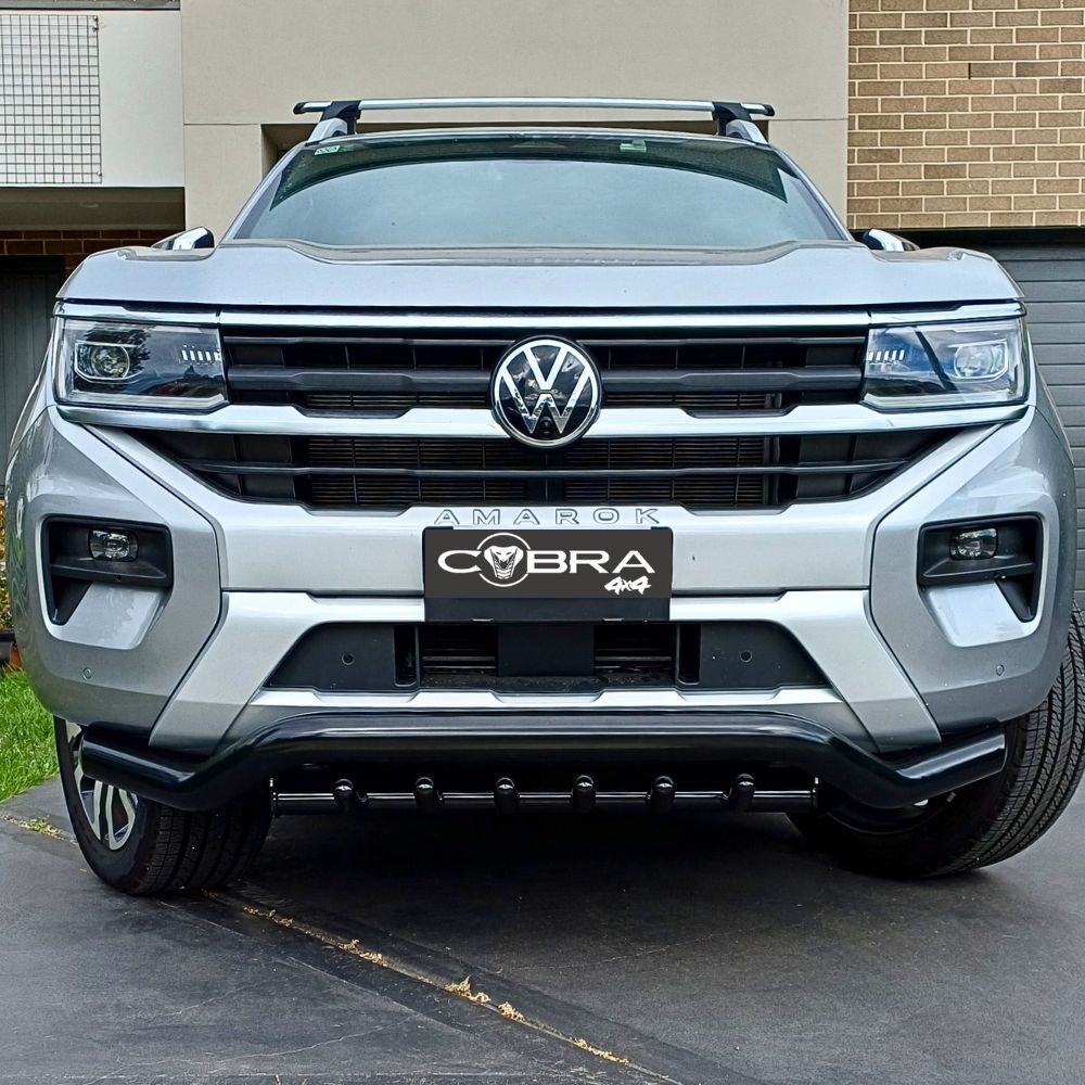 Introducing the Cobra 4x4 Shark Steel Nudge Bar, the ultimate front-end protection for your Amarok 2023 Onwards Next-Gen models. Expertly engineered and crafted from premium gloss/satin black steel, this nudge bar delivers unmatched durability and rugged style.