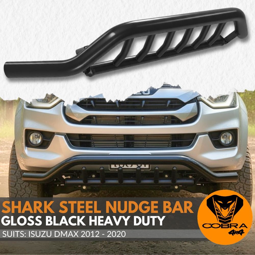 Shark Nudge Bar Gloss Black Heavy Duty Steel Suits Isuzu Dmax 2012 - 2020 D-max Front Grill Bull Bumper Guard