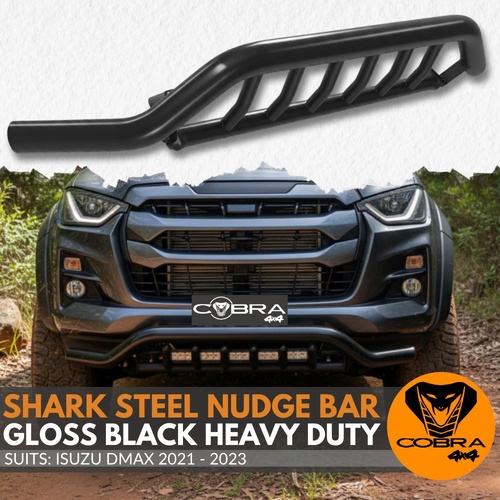 Shark Nudge Bar Gloss Black Heavy Duty Steel Suits Isuzu Dmax D-max 2021 - 2023 Front Grill Bull Bumper Guard