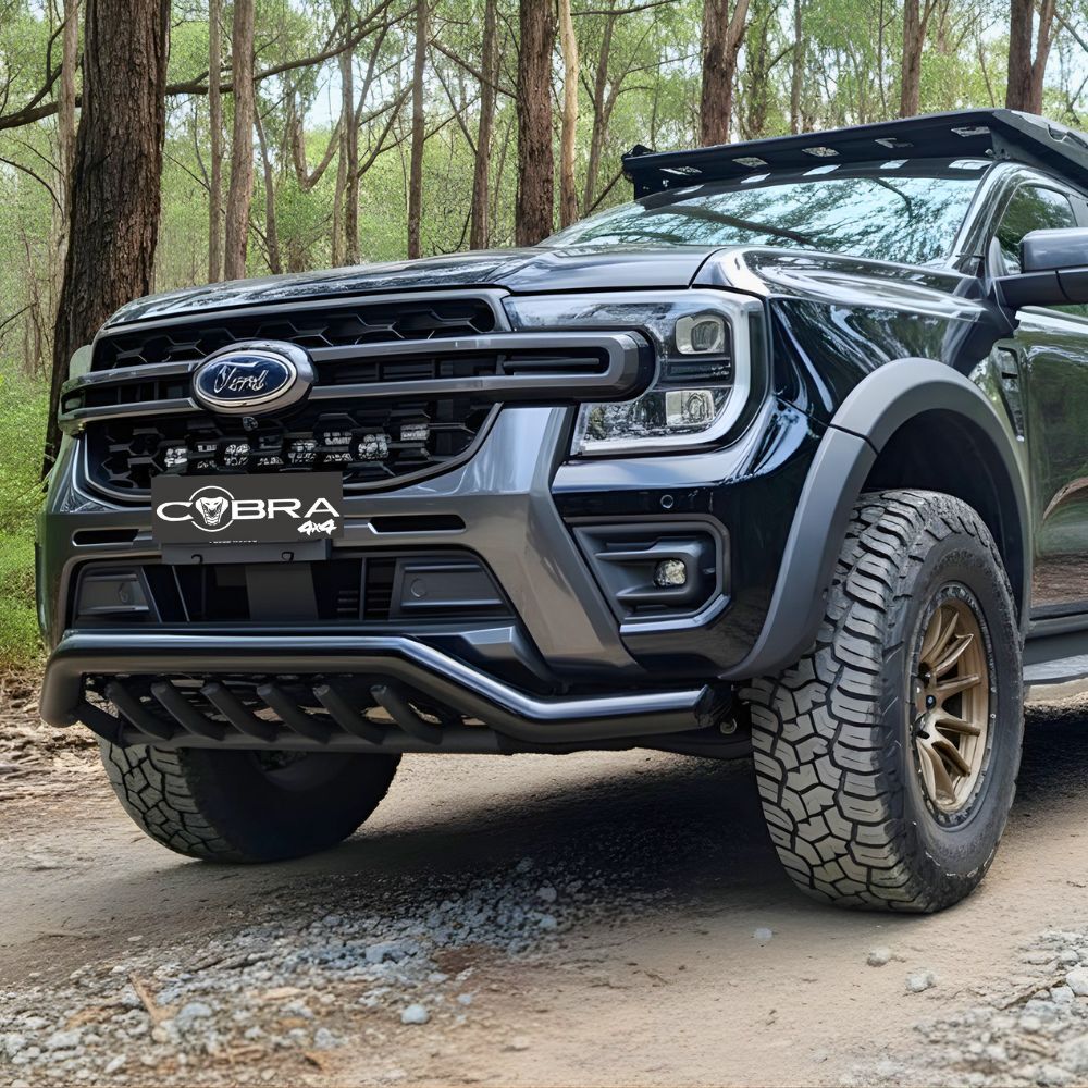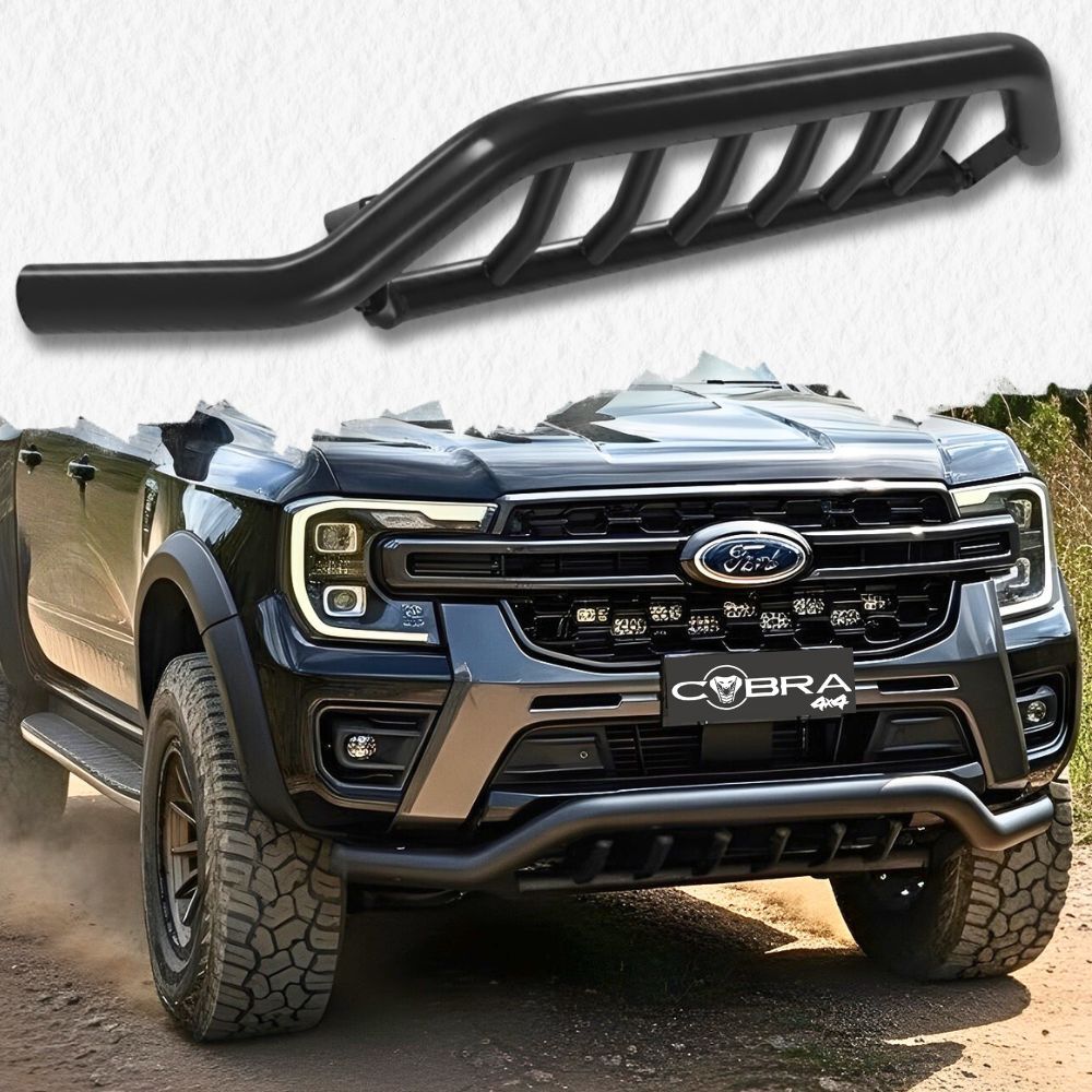 Introducing the Cobra 4x4 Shark Steel Nudge Bar, the ultimate front-end protection for your Ranger Next-Gen 2022 Onwards. Expertly engineered and crafted from premium gloss/satin black steel, this nudge bar delivers unmatched durability and rugged style.