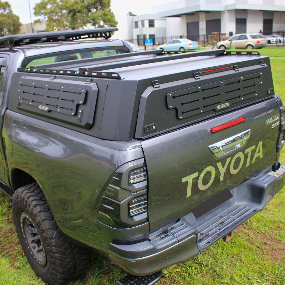 • Side and Rear Mounting Plates: Utilize mounting plates with channels for easy addition of gear like mud tracks, petrol, water tanks, and more. Customizable Storage: The spacious interior of the canopy allows for versatile storage options, whether you need to organize tools, equipment, or recreational gear. Add shelving, dividers, or racks to customize the space according to your specific needs.