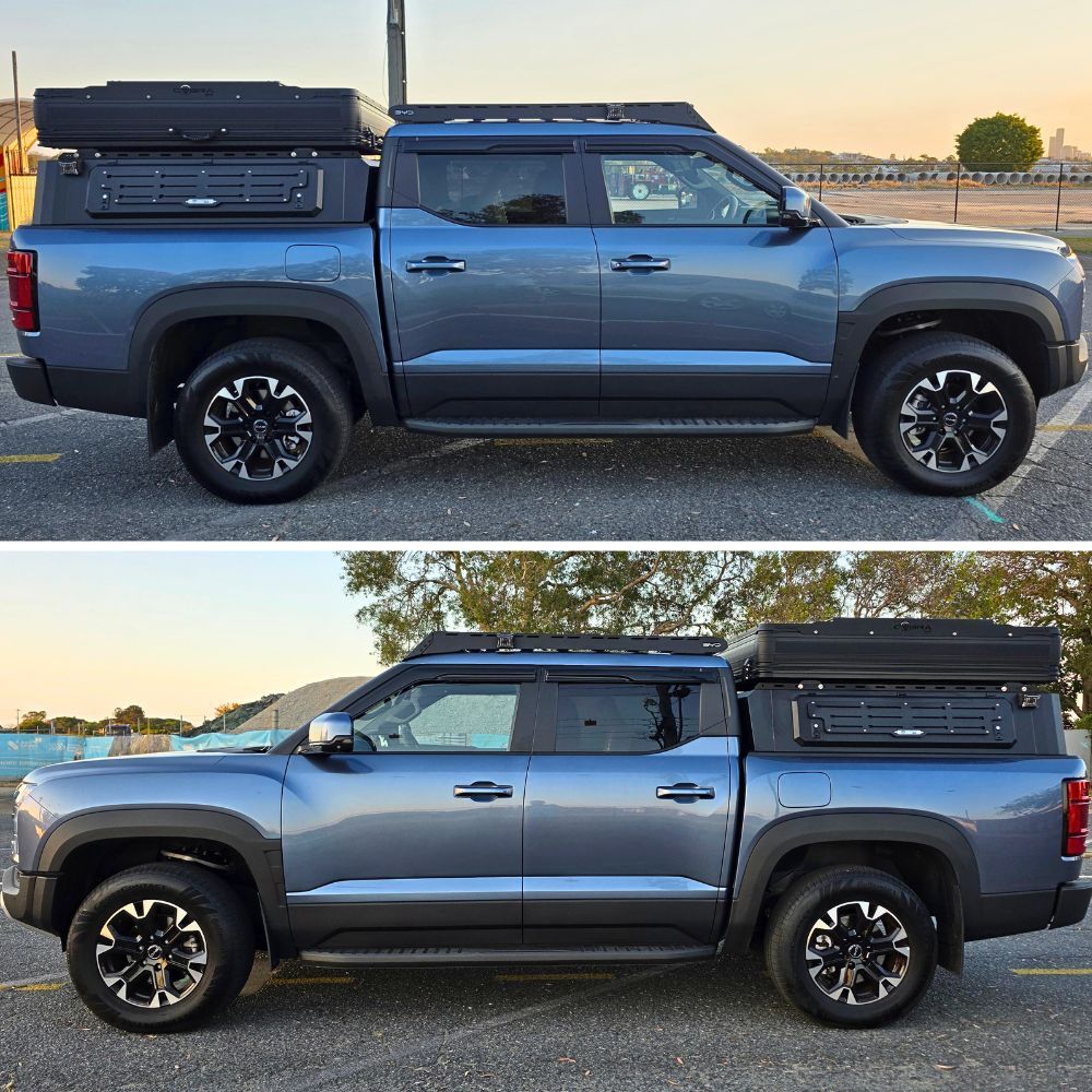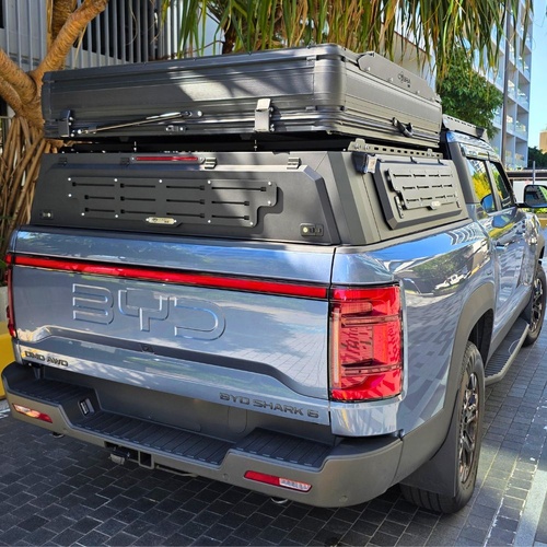 Short Heavy Duty Galvanised Steel Canopy fits BYD Shark 6 2024 Onwards Dual Cab Tradie Black Low Rider Profile for Roof Rop Tents