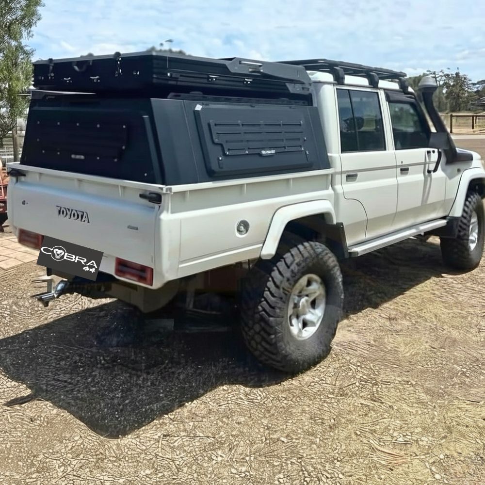 You may find yourself torn between opting for a roller shutter or a canopy. However, the roller shutter may not offer sufficient trunk space, while the canopy might be slightly too high for your preference, especially when adding gear or rooftop tents. Cobra 4x4 now introduces an innovative low-profile, heavy-duty galvanized steel canopy tailored to fit your dual-cab Landcruiser 79 Series.