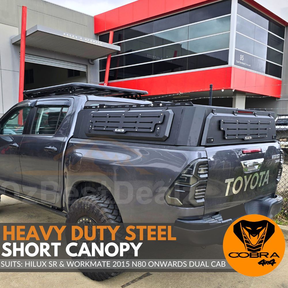 Short Heavy Duty Galvanised Steel Canopy fits Toyota Hilux SR Workmate 2015 Onwards N80 Dual Cab Tradie Black Low Rider Profile for Roof Rop Tents