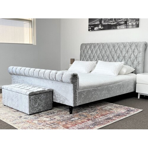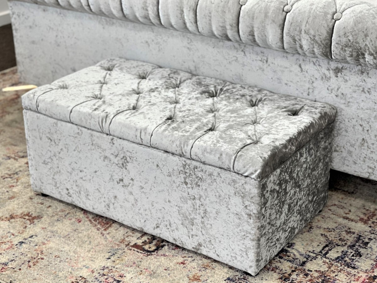 Silver Crushed Velvet Ottoman Upholstered Fabric Tufts Storage Bench for Bed