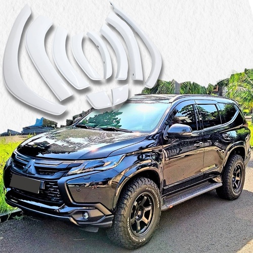 White Pajero Compatibility: These flares come in a gloss white finish that closely matches the white Pajero, offering a clean and seamless appearance. While not factory color-coded, they’re a great quick solution — much easier than buying matte black flares and painting them yourself.