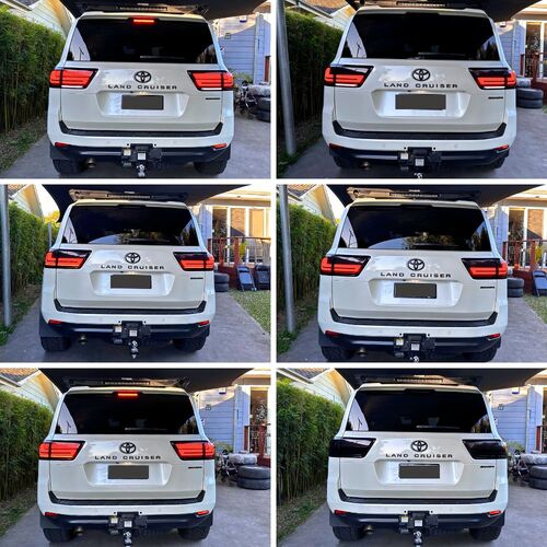 Enhance your Landcruiser style with our Smoked Black LED Tail Lights for the Landcruiser 300 series. Make a bold statement and transform your 4WD's appearance with the best-designed taillights on the market. Directly supplied from Australia, these lights run LED globes. Perfectly fitting all Landcruiser 300 series, this upgrade gives your vehicle a cohesive and contemporary look. Elevate your driving experience with our top-quality Smoked Black Tail Lights.