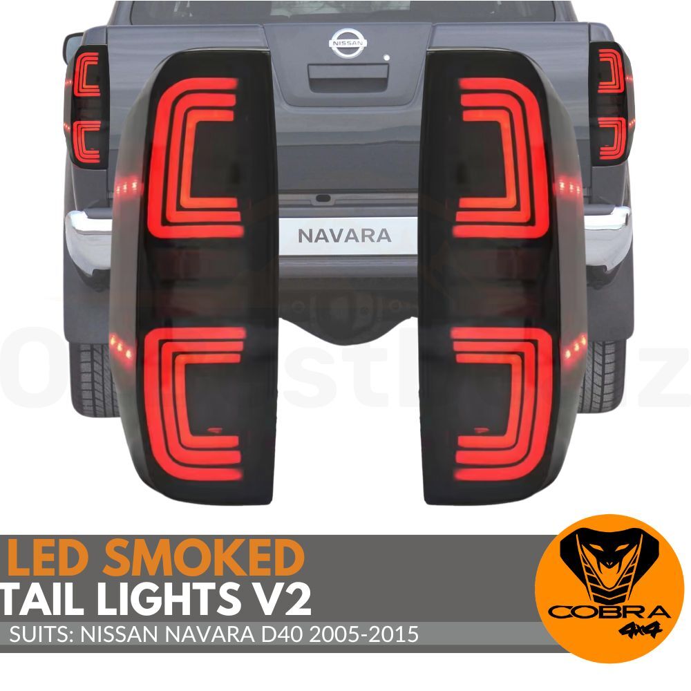 Smoked Black LED Tail Lights V2 For Nissan Navara D40 2005 - 2015 Taillights