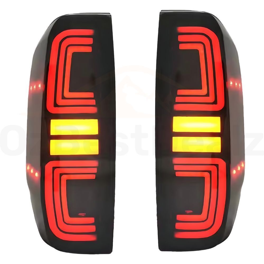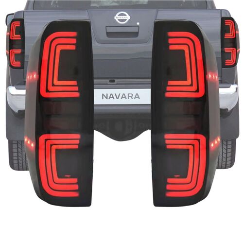 Smoked Black LED Tail lights with Start Animation for Nissan Navara D40 2005-2015 onwards.