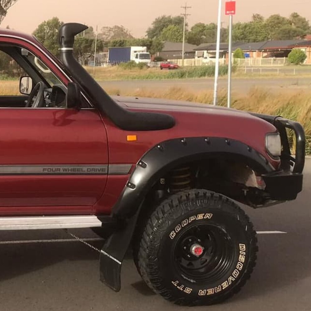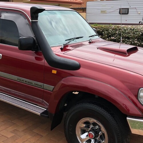 The all-new Cobra 4x4 J-Spec snorkels made to fit the Toyota Landcruiser 80 Series 1990-98. They are made from Linear Low-Density Polyethylene (LLDP) which is a strong, durable plastic widely found in the auto parts industry for items that require long life, impact resistance, and good UV durability. The typical wall thickness of our snorkels is 5-6mm which will provide maximum resistance against impact damage. With our snorkels, all parts included are designed to fit correctly, if installed properly, it will provide water and dustproof path for your air intake system. This will save your engine against costly repairs from water damage, and reduced air filter servicing costs as it will draw cleaner air from its elevated intake. This is particularly beneficial while following other vehicles on dry dusty roads.