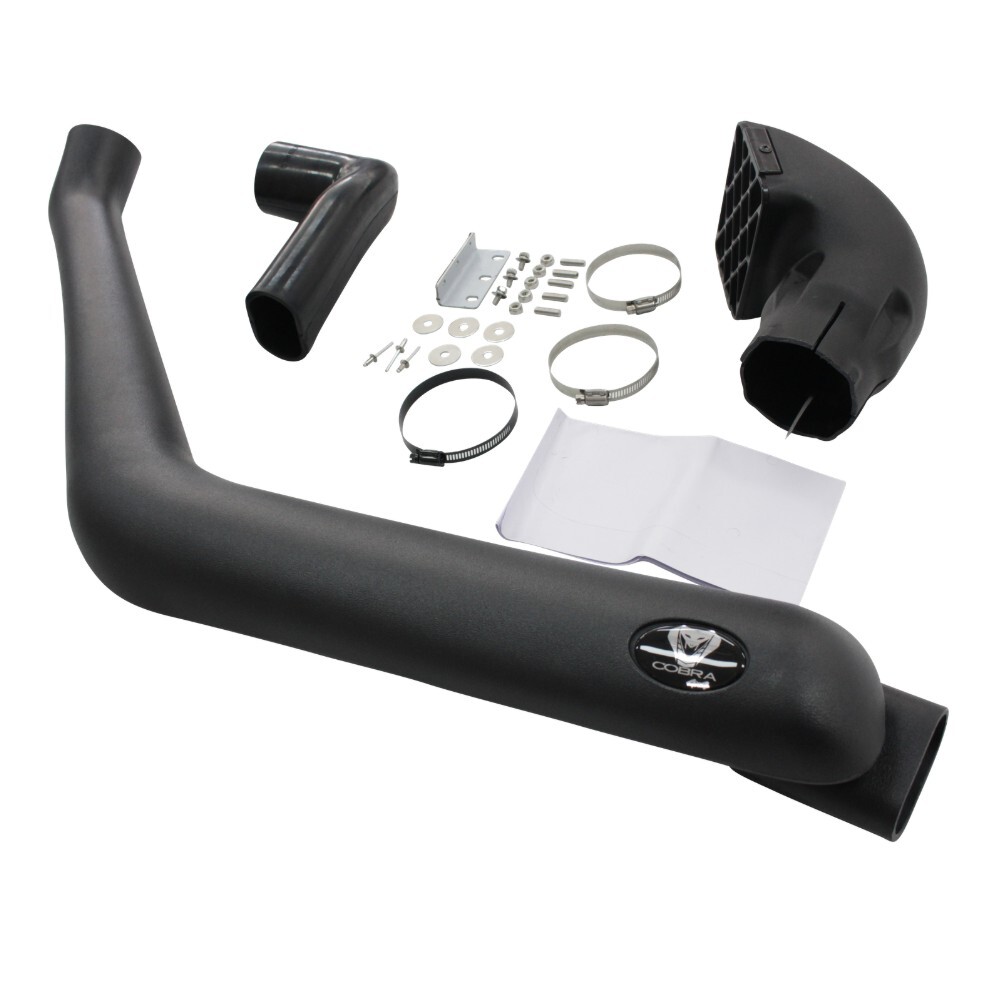 The All-New Cobra 4x4 Snorkel is suitable for the Toyota Hilux  12/1997 - 03/2005 167 Series Petrol. They are made from Linear Low-Density Polyethylene (LLDP) which is a strong, durable plastic widely found in the auto parts industry for items that require long life, impact resistance, and good UV durability. The typical wall thickness of our snorkels is 5-6mm which will provide maximum resistance against impact damage. With our snorkels, all parts included are designed to fit correctly, if installed properly, it will provide water and dustproof path for your air intake system. This will save your engine against costly repairs from water damage, and reduced air filter servicing costs as it will draw cleaner air from its elevated intake. This is particularly beneficial while following other vehicles on dry dusty roads.