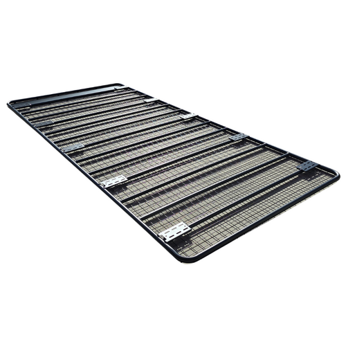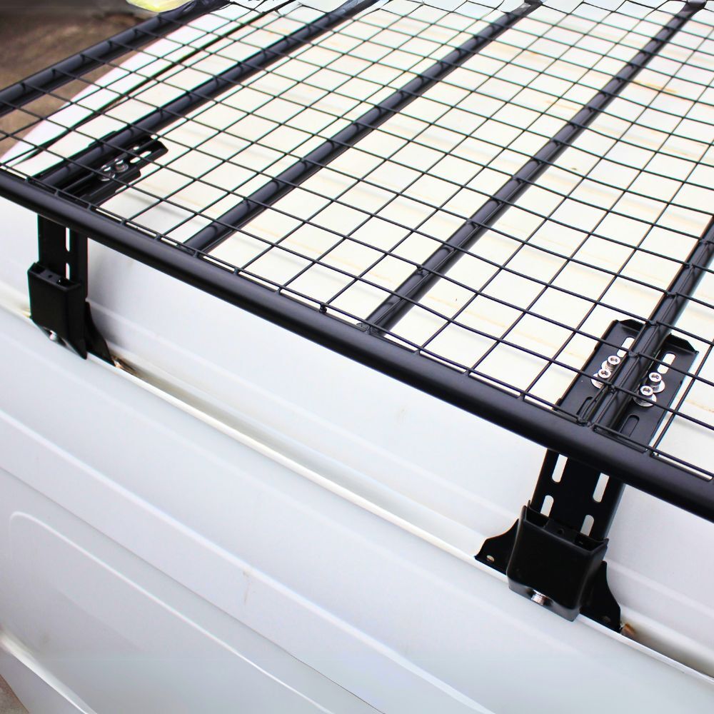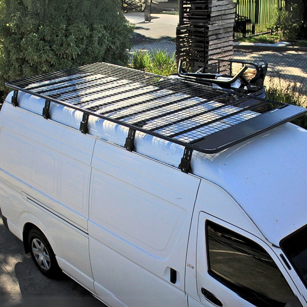 Steel Flat Roof Rack Full Length Platform fits Hiace 2005 - 2018 SLWB 330cm x 150cm Rain Gutter Brackets Black Powder Coated