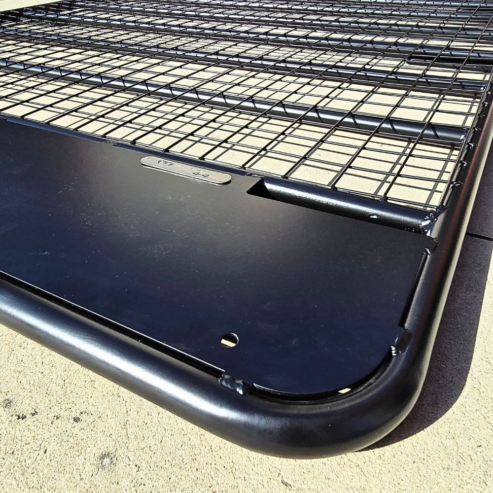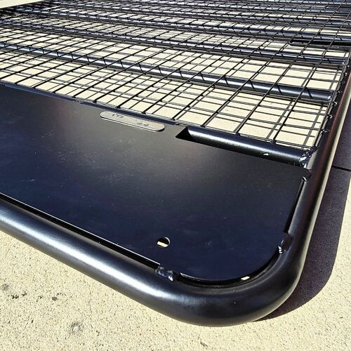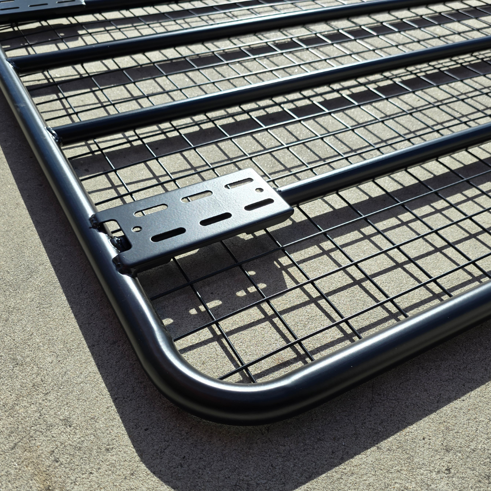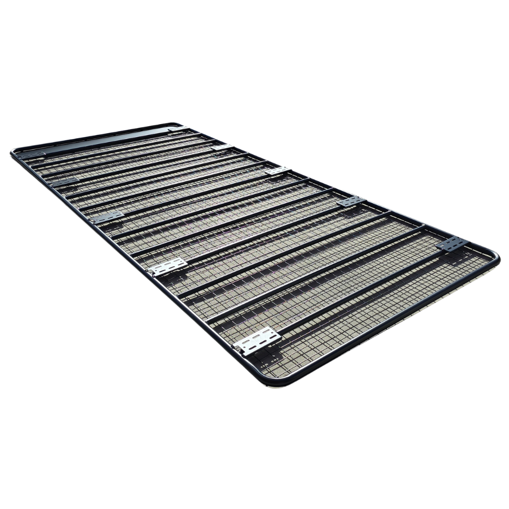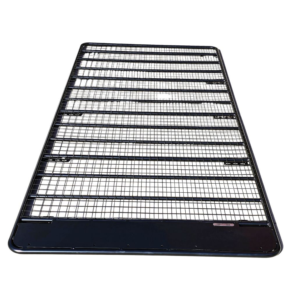 The Cobra 4x4 Steel Flat Roof Rack Full Length with rain gutter brackets is made from tough black powder-coated steel for longer-lasting protection and durability.
