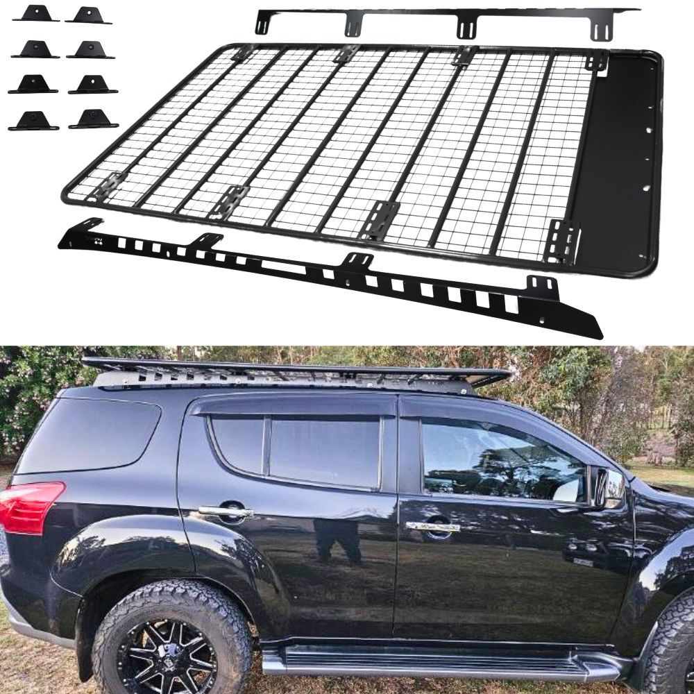 Steel Flat Roof Rack Platform fits Isuzu Mu-x Mux 220cm x 125cm Brackets Black Powder Coated 2013 - 2021