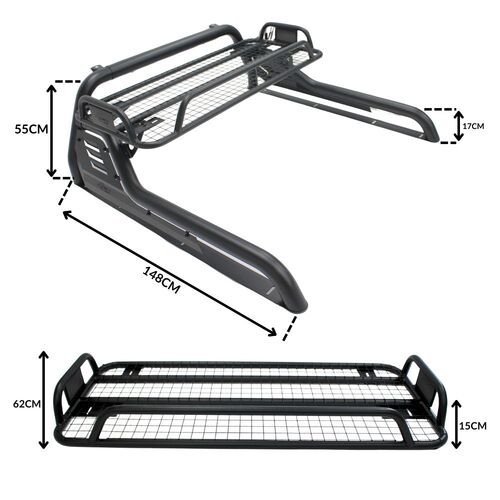 Steel Full Length Roll Bar With Rack Platform Suits Jeep Gladiator JT 2021 Onwards Sports Bar Sportsbar Hilux Ranger BT50 Dmax NP300
