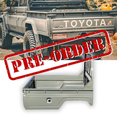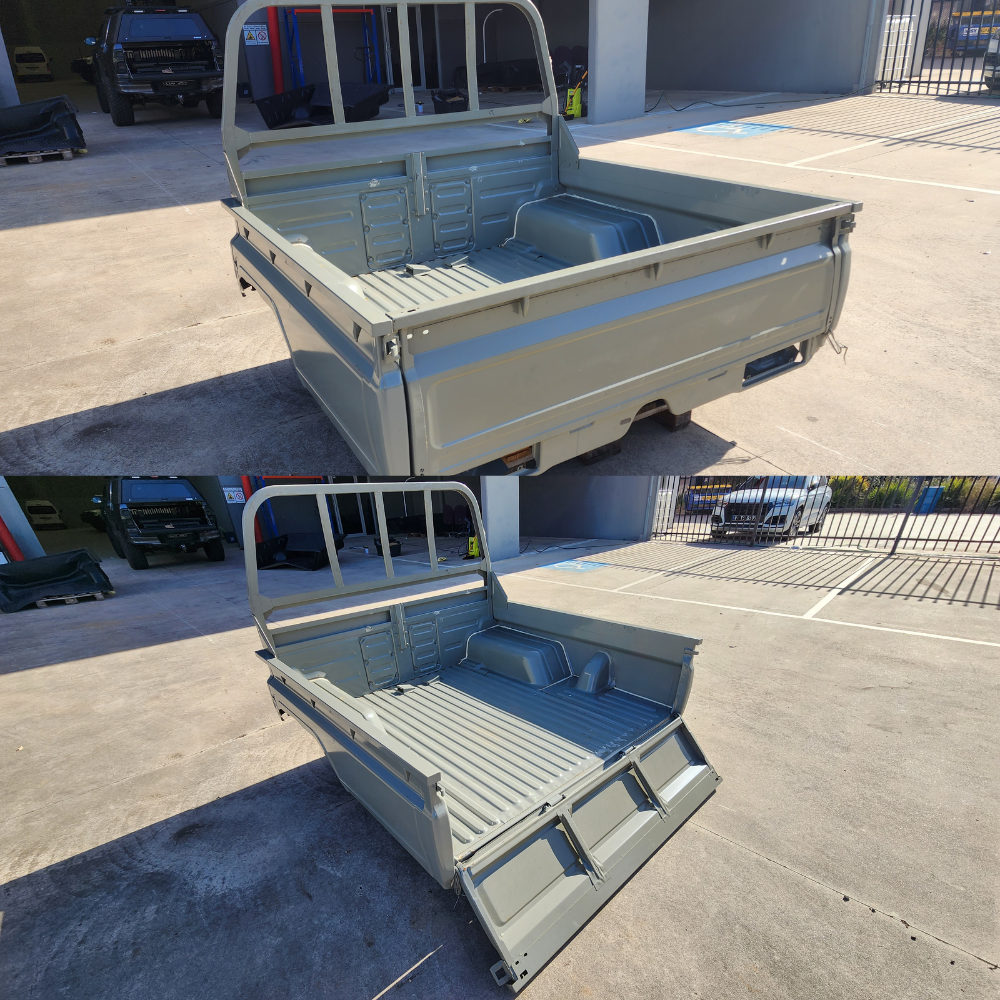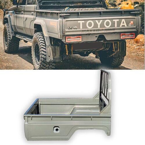 PRE-ORDER ONLY | Steel Tub Tray Suits Landcruiser 79 series Dual Cab Unpainted Rear Wellbody Undercoat with Tail lights and latches