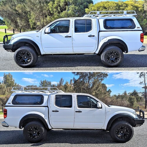 Textured OEM style flares to suit D40 2008 to 2014 Thai-built dual cab models. Made from 2mm thick ABS plastic to protect your guards while adding some extra wheel cover to suit larger wheels.