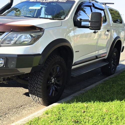 Cobra 4x4 Thin OEM style matte black finish flares to suit the Colorado made for those who want to maintain a slick look while adding a few cms of extra wheel cover allowing you to add larger wheels and stay legal while giving your car a unique tough look. Please check our store for other Colorado products and accessories.