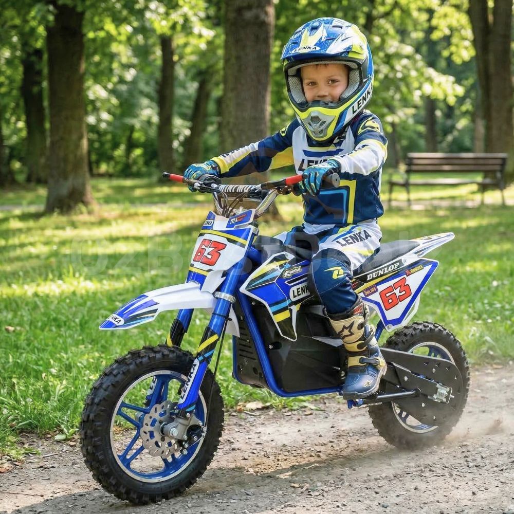 This is a proper kids dirtbike, not a toy. It’s built with a strong frame, real suspension, front and rear disc brakes, and adjustable speed settings so parents can control how fast the bike goes depending on the rider’s age and experience level.