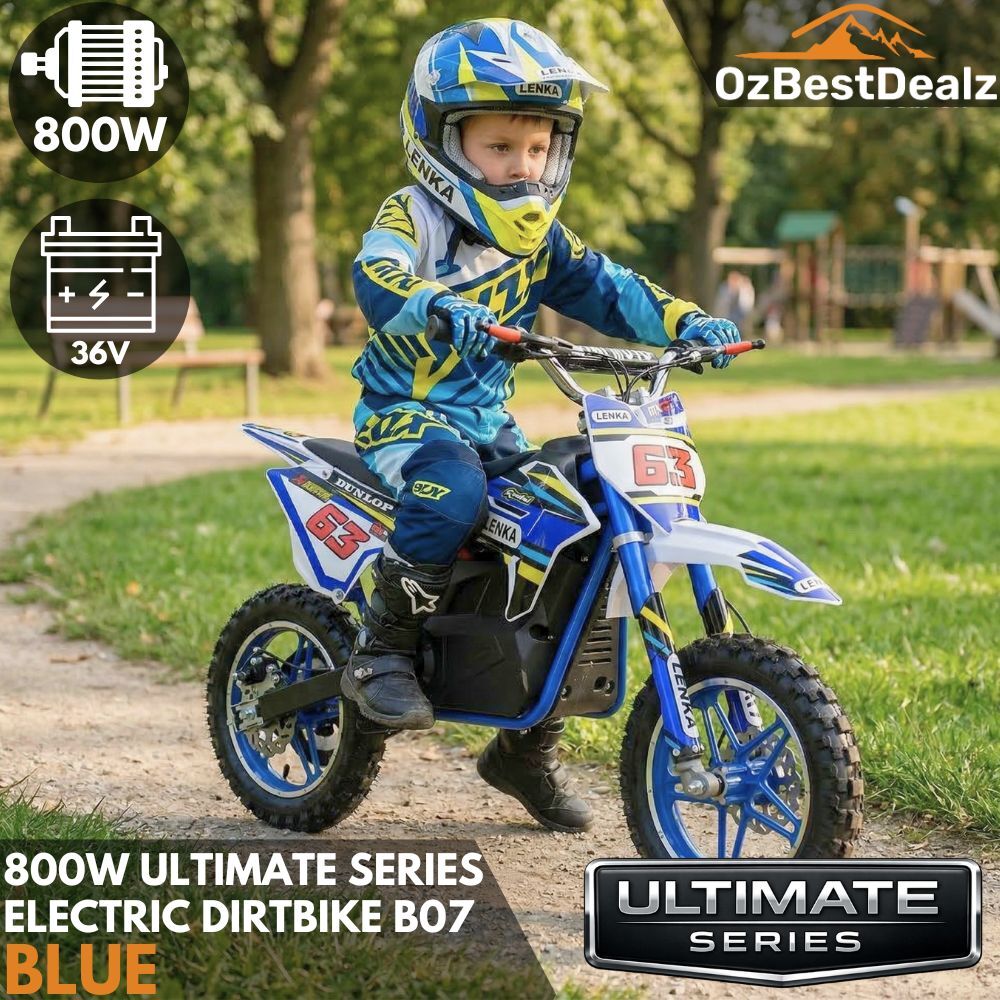 Ultimate Series Kids Electric 800W Dirtbike Dirt Bike Blue Ride On Motorcycle Motorbike Off Road Steel Blue Child