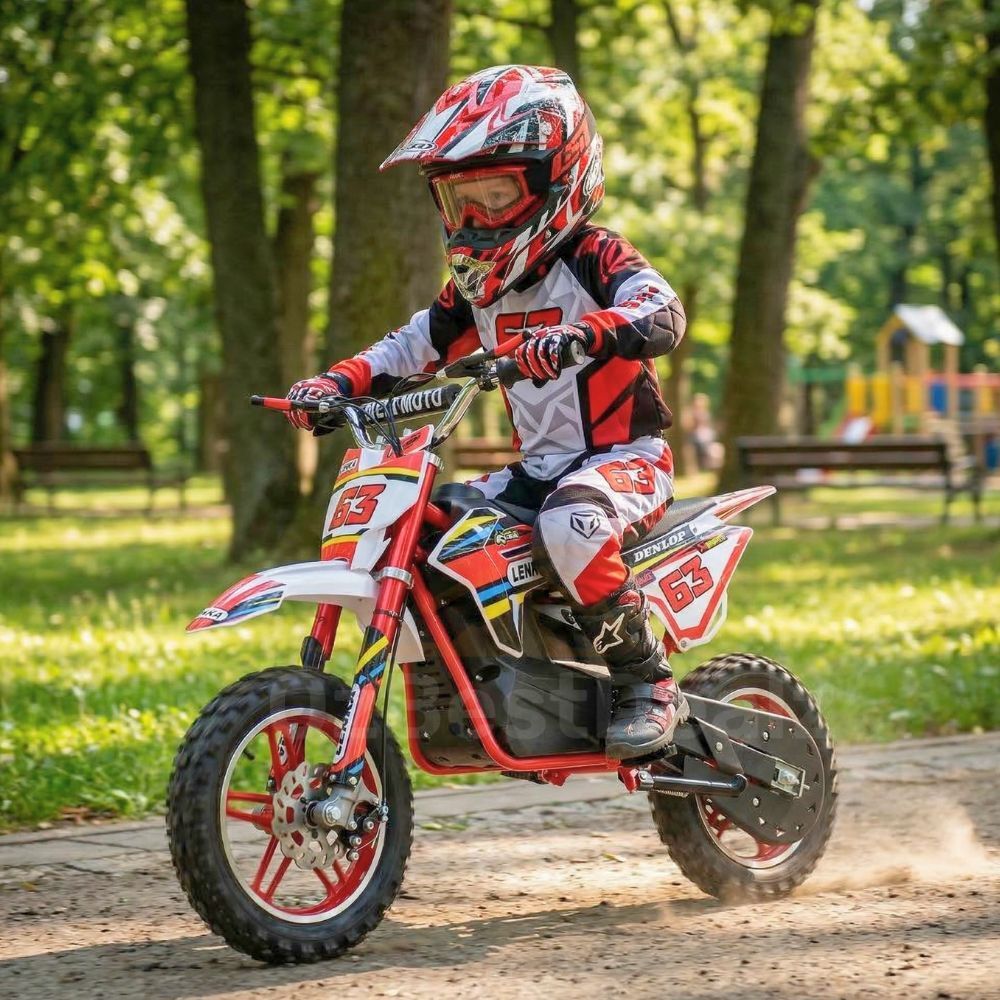 This is a proper kids dirtbike, not a toy. It’s built with a strong frame, real suspension, front and rear disc brakes, and adjustable speed settings so parents can control how fast the bike goes depending on the rider’s age and experience level.