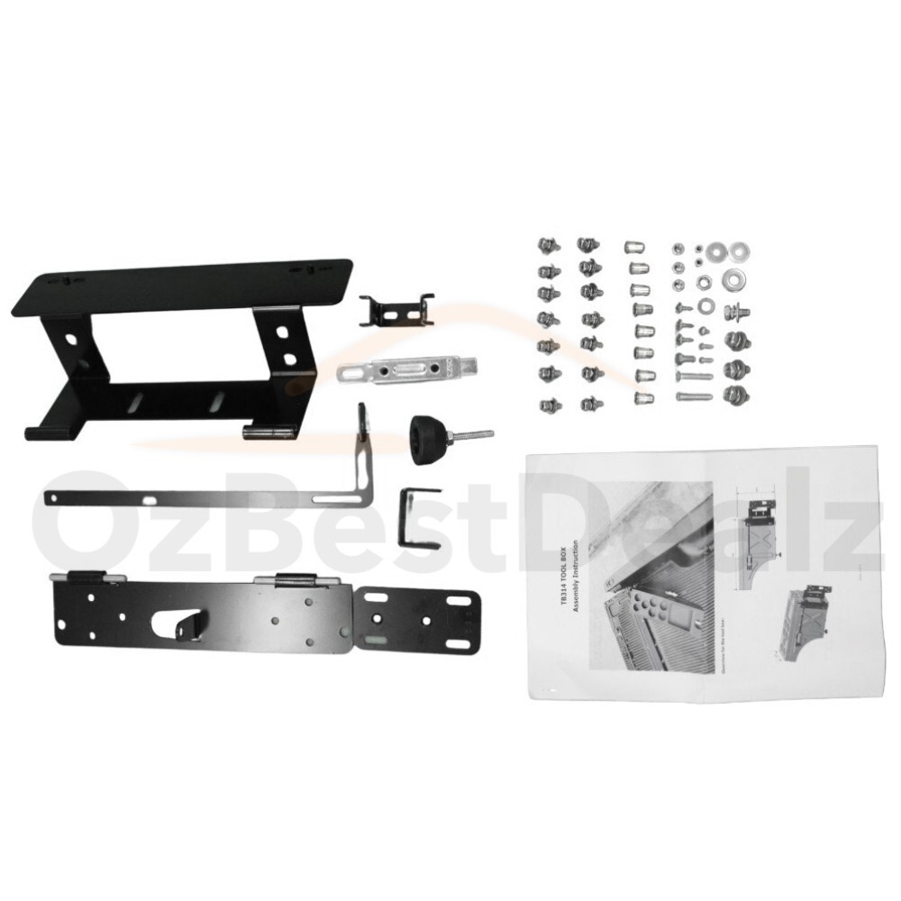 Installation: this box is universal. It requires professional installation to ensure correct fitment. If you have a tub plastic liner it will need to be modified and trimmed to ensure the brackets are screwed into the metal tub. All accessories are included, however, depending on your car model you may need some mods such as using rivets and securing the lever lock in the correct angle
