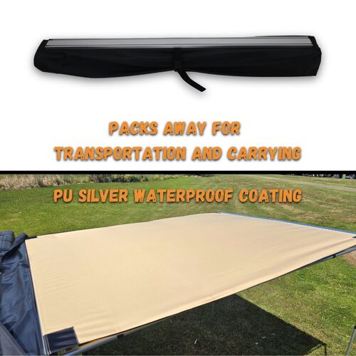 Universal Foldable Awning Waterproof 2 x 2.5m 420D Side 4WD 4X4 Portable Compact Outdoor Shade Folding Water-Proof Ute SUV Cover