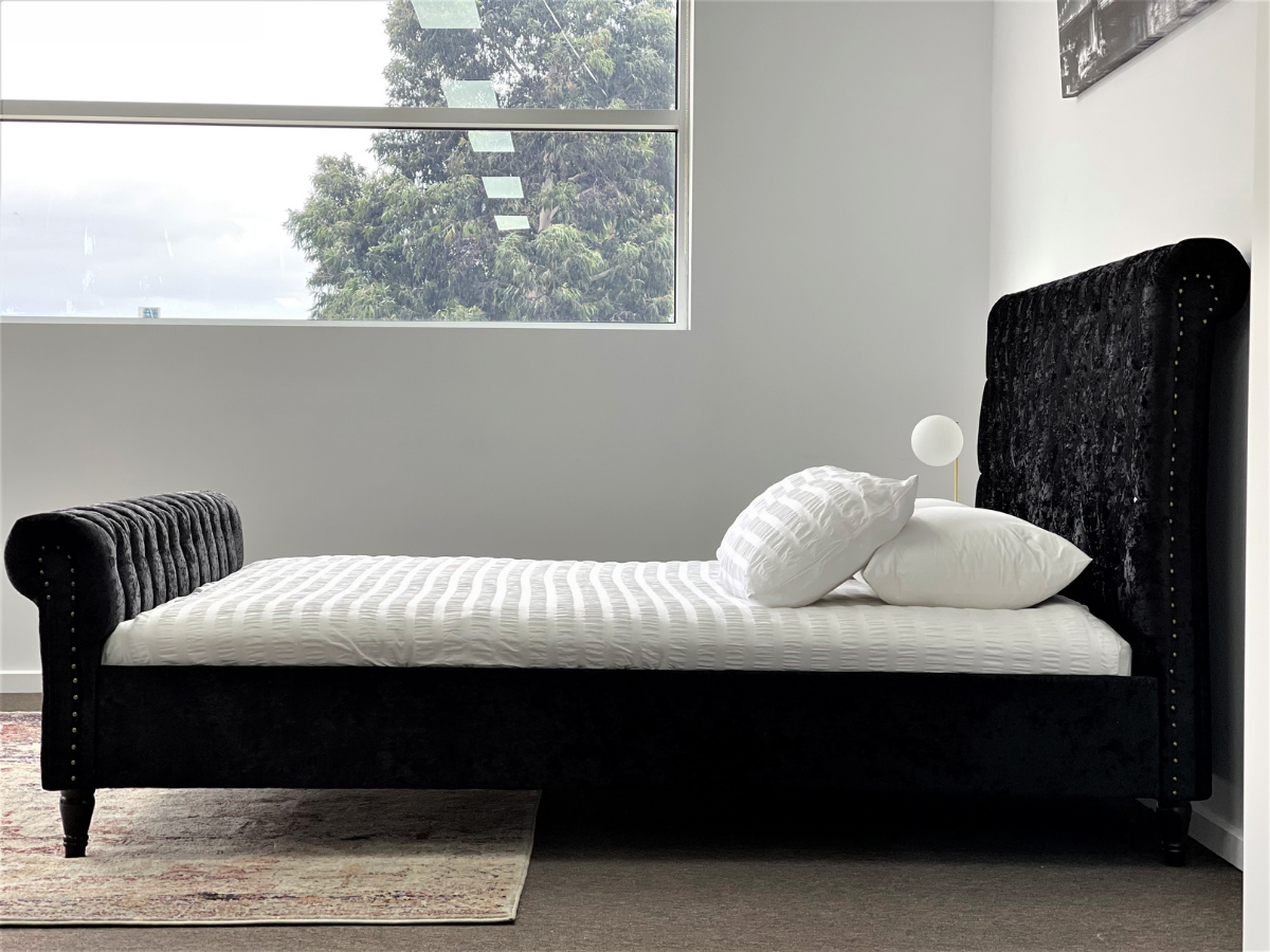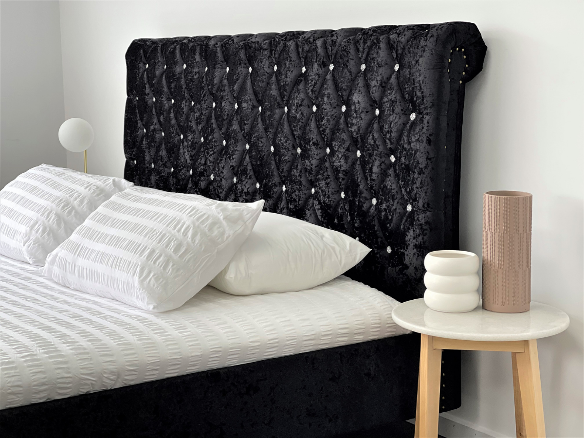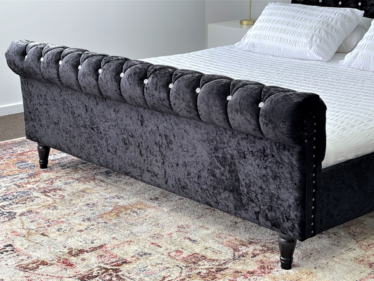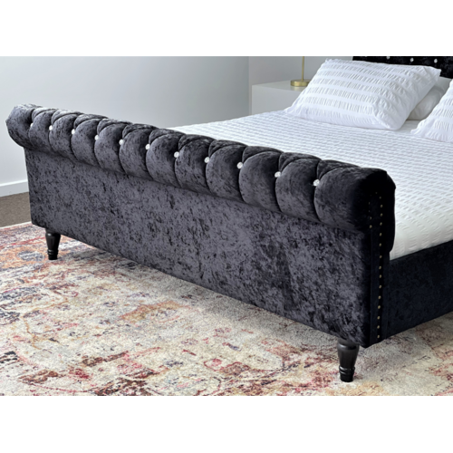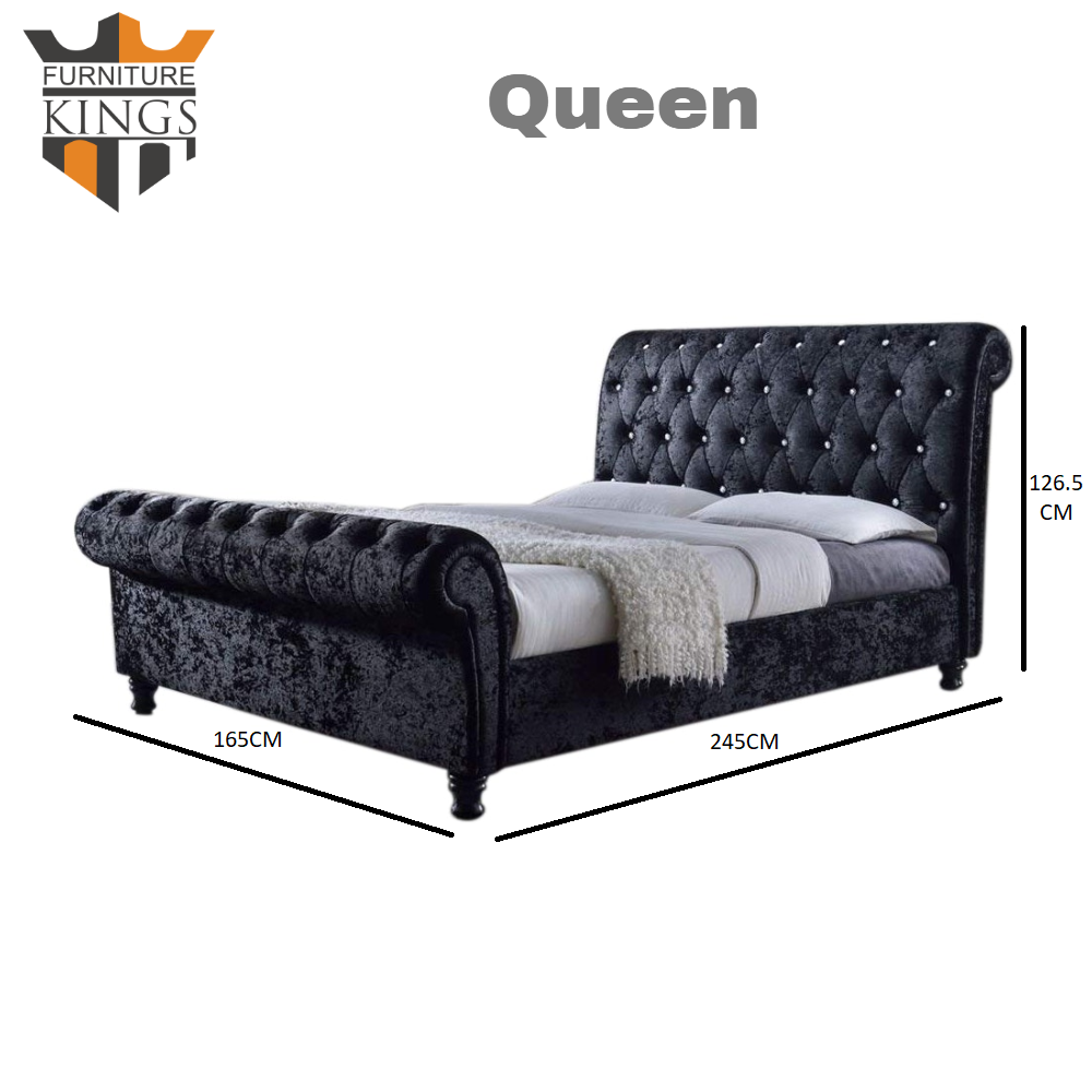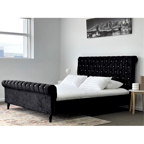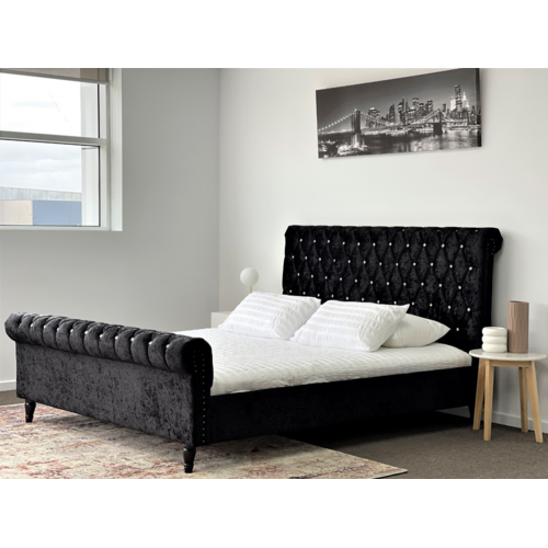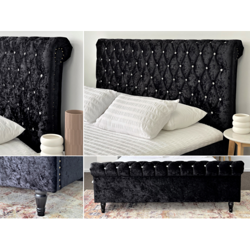 Venice Black Luxury Velvet Fabric Bed Frame King or Queen