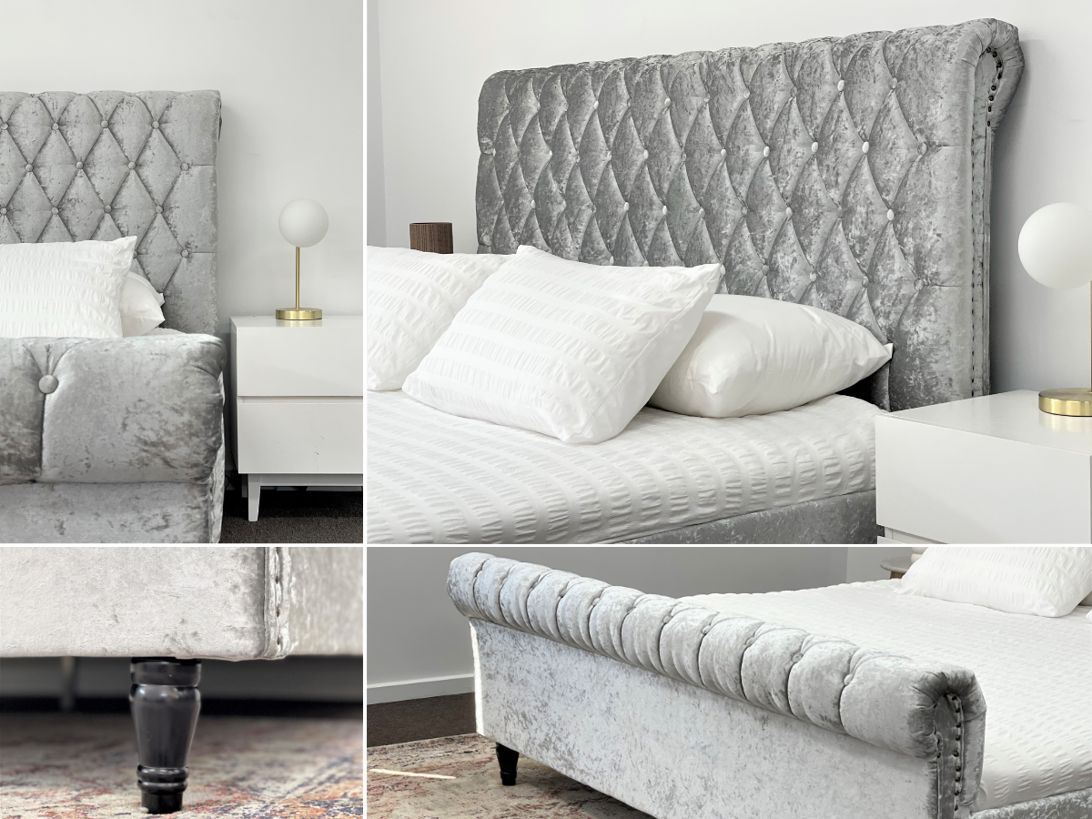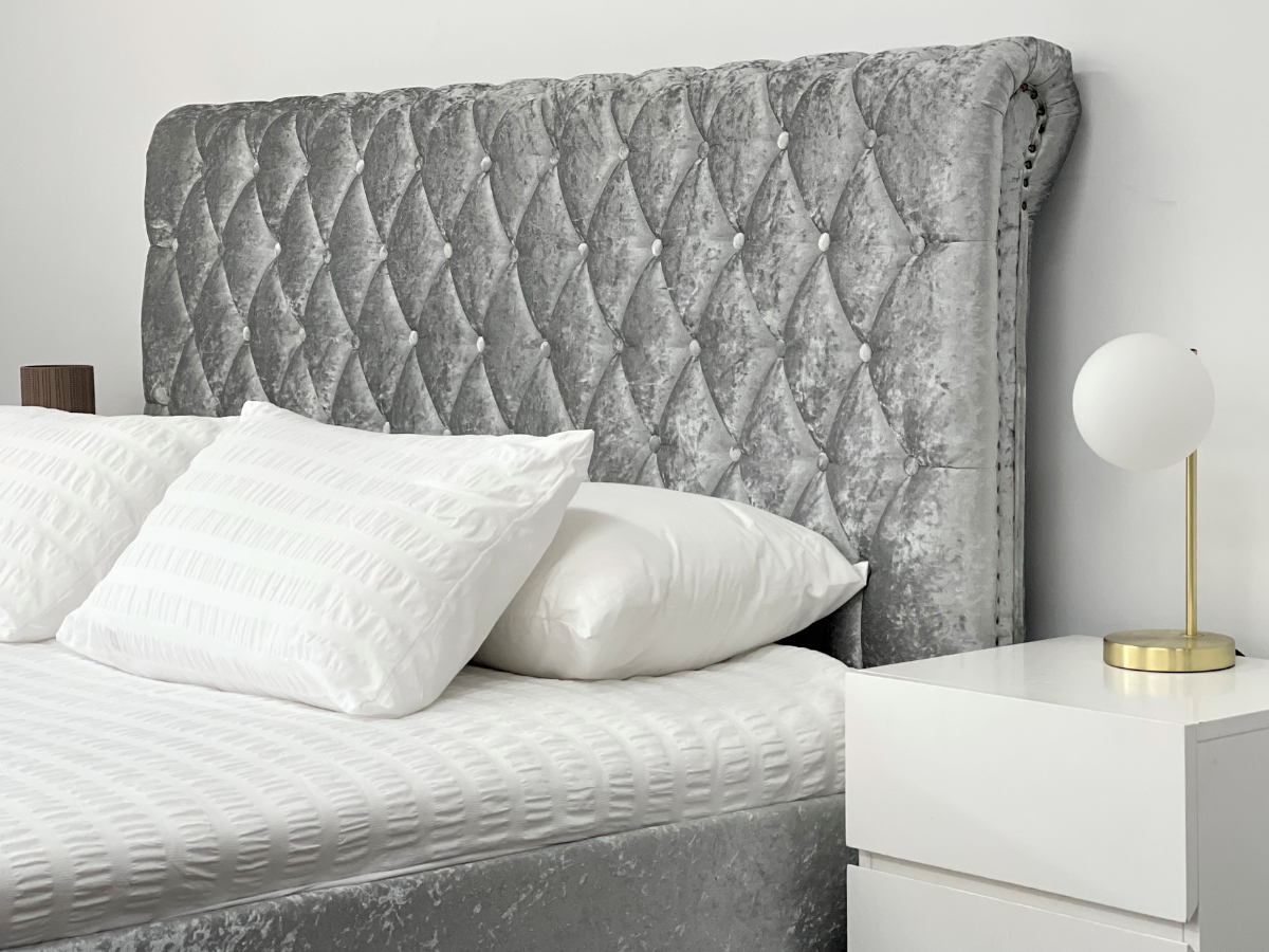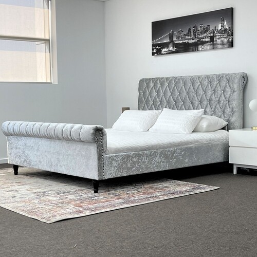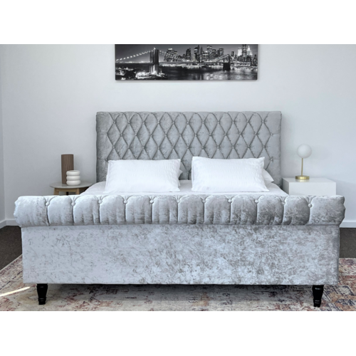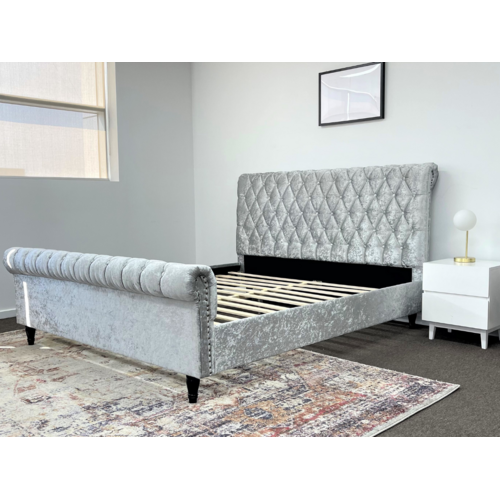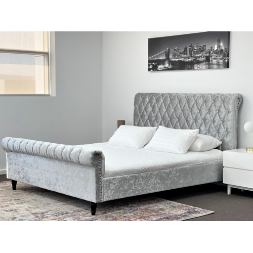 Venice Silver Grey Luxury Velvet Fabric Bed King or Queen